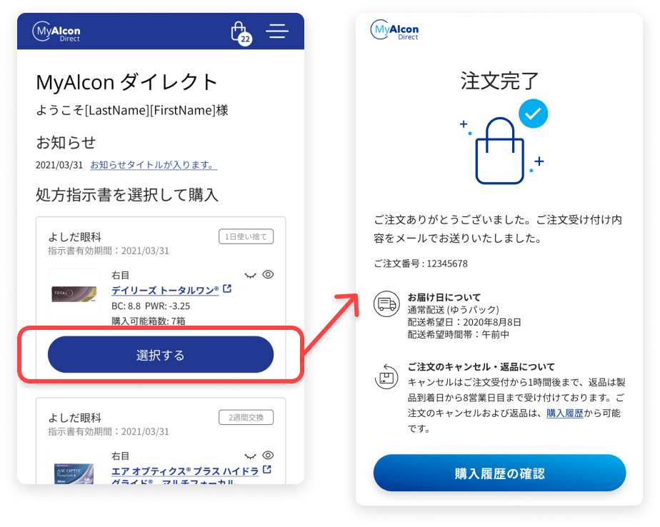 交換対象となる製品とは別に、新たに追加取得した指示書で購入いただき、注文完了まで進めてください。