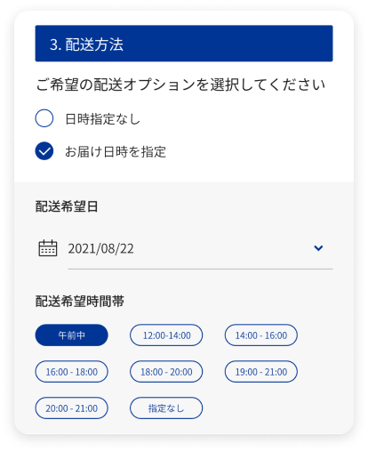 お届け日時の指定ができます。
